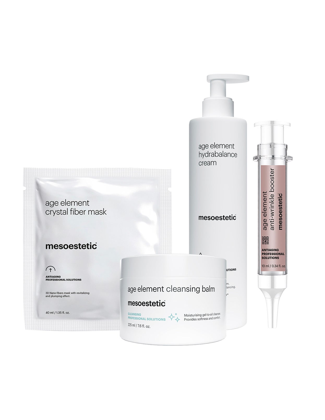 age element® anti-aging oplossingen zijn ontwikkeld om de belangrijkste tekenen van veroudering te behandelen; het is niet verplicht om de bijbehorende professionele behandeling uit te voeren. De combinatie van cabinebehandeling en follow-up van de bijbehorende age element® thuisroutine maximaliseert de resultaten en verhoogt de effectiviteit van de formules.