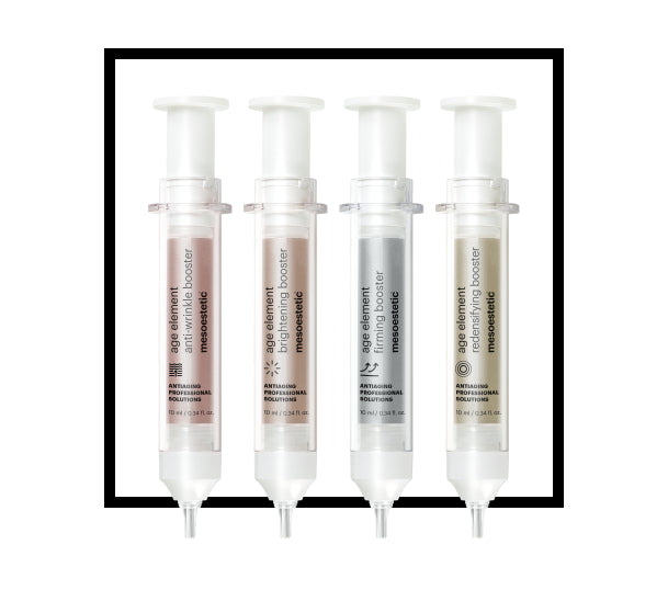 De age element-behandeling maakt gebruik van vier gespecialiseerde boosters, ontworpen om specifieke huidproblemen aan te pakken: